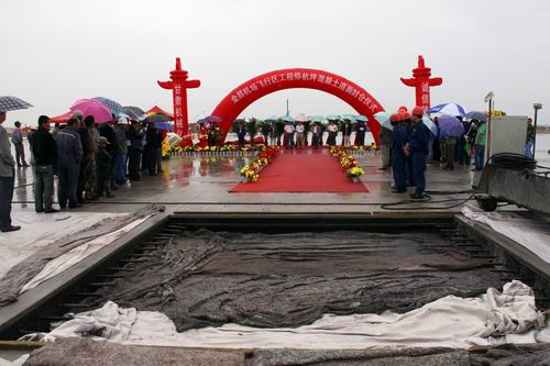 由公司承建的金昌機(jī)場(chǎng)停機(jī)坪工程按4C標(biāo)準(zhǔn)設(shè)計(jì),站坪機(jī)位4個(gè)(2B2C),總面積2.65萬(wàn)平方米,可供波音737和空客320等機(jī)型的起降。該項(xiàng)工程自2009年10月進(jìn)場(chǎng),公司金昌機(jī)場(chǎng)項(xiàng)目部全體人員在高溫酷暑、大風(fēng)揚(yáng)沙等惡劣氣候條件下,克服種種困難,通過(guò)改進(jìn)施工工藝、調(diào)整作業(yè)時(shí)間等措施,順利完成了基礎(chǔ)施工。項(xiàng)目部?jī)H用了25個(gè)晝夜就完成停機(jī)坪2.65萬(wàn)平方米混凝土道面工程施工。