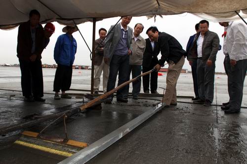 停機(jī)坪道面工程的順利封倉(cāng),標(biāo)志著整個(gè)飛行區(qū)工程建設(shè)取得了階段性成果,為整個(gè)飛行區(qū)工程達(dá)到年底校飛的建設(shè)目標(biāo)奠定了堅(jiān)實(shí)的基礎(chǔ)。