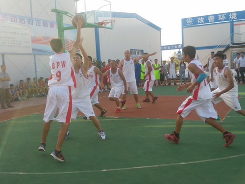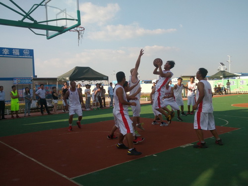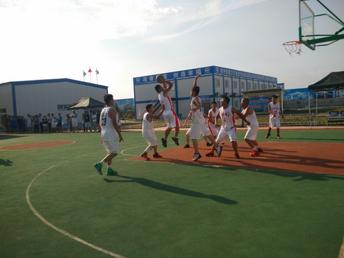 在此次的比賽中,參賽的單位有監(jiān)理3標(biāo)中企建發(fā)、1標(biāo)中鐵十二局、4標(biāo)四川場(chǎng)道、3標(biāo)中國(guó)華西、5標(biāo)上海路橋、8標(biāo)中鐵航空港、10標(biāo)中水十六局、6標(biāo)甘肅機(jī)械化共8支籃球隊(duì)進(jìn)行參賽,建設(shè)單位也派隊(duì)參加,進(jìn)行友誼賽,我們跟兄弟單位中鐵航空港,上海路橋,中水十六局、四川場(chǎng)道一決高下,最后入圍四強(qiáng),在決賽的比賽中,我們?cè)俅斡鲆妼?shí)力強(qiáng)勁的中水十六局,雙方隊(duì)員在籃球比賽現(xiàn)場(chǎng)氣氛熱烈,隊(duì)員們積極進(jìn)攻,嚴(yán)密防守,精彩的配合,巧妙的搶斷,不時(shí)的將比賽氣氛推向高潮。天氣雖然炎熱,但絲毫沒有影響隊(duì)員的熱情,盡管兩支球隊(duì)都是業(yè)余籃球愛好者,但他們?cè)诒荣愔芯憩F(xiàn)出較好的團(tuán)隊(duì)協(xié)作能力,一群年輕人激情飛揚(yáng),帶球、傳球、搶斷、上籃,賽場(chǎng)對(duì)抗激烈,隊(duì)員個(gè)個(gè)揮汗如雨,最后在我方隊(duì)員的努力拼搏下,以32:30的比分,贏得第一。