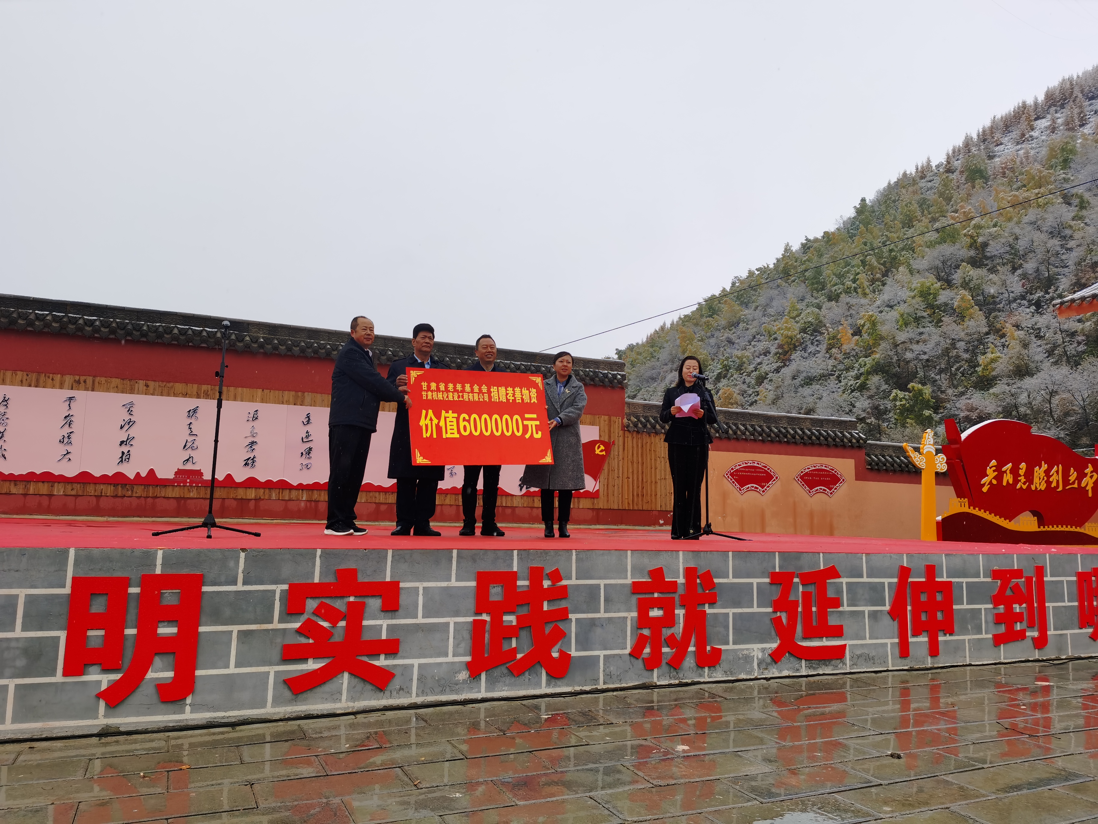 在這金秋十月,重陽節(jié)來臨之際,2023年10月18日,定西市新時(shí)代文明實(shí)踐活動(dòng)在岷縣隆重舉行。我司攜手省老年基金會(huì)捐贈(zèng)了價(jià)值60多萬元的愛心物資,送去了溫暖,表達(dá)了愛心,盡企業(yè)的綿薄之力,力所能及的幫助貧困群眾解決生活困難。