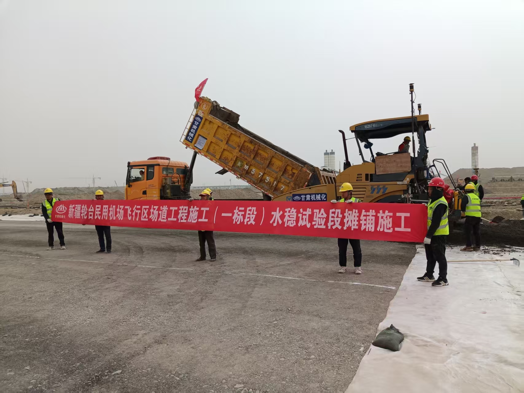 3月27日,新疆輪臺民用機(jī)場項(xiàng)目現(xiàn)場,隨著首車水泥穩(wěn)定砂礫混合料倒入攤鋪機(jī),其緩緩啟動,我司承建的該項(xiàng)目飛行區(qū)場道工程(一標(biāo)段)水穩(wěn)基層施工正式開啟。
