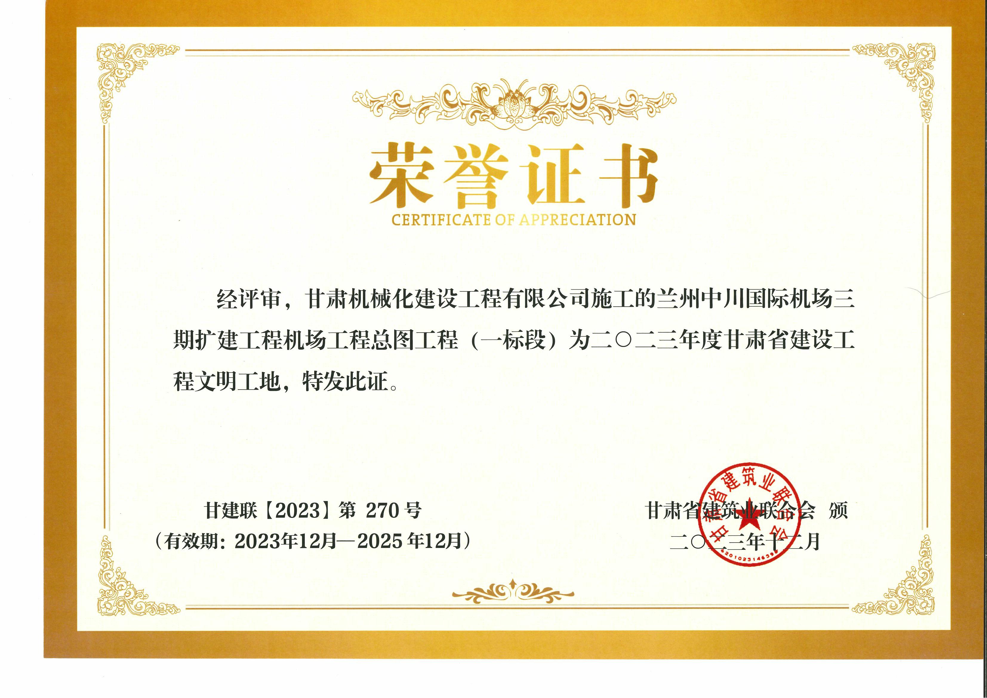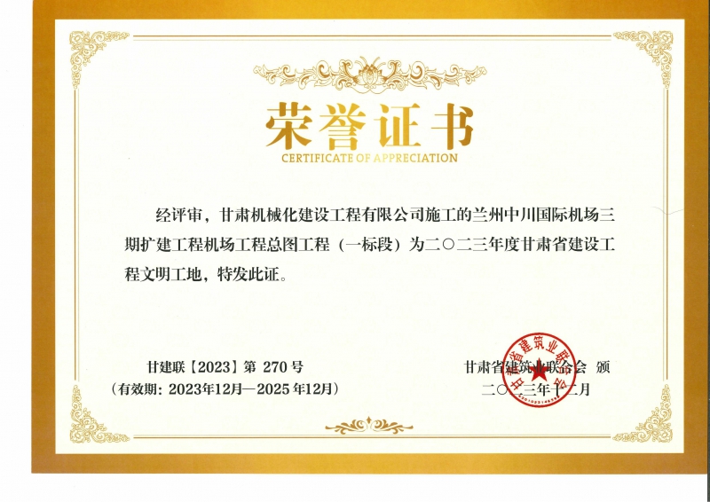 2023年度甘肅省建設(shè)工程文明工地 蘭州中川國際機場二期擴建工程機場工程總圖工程 (一標(biāo)段)